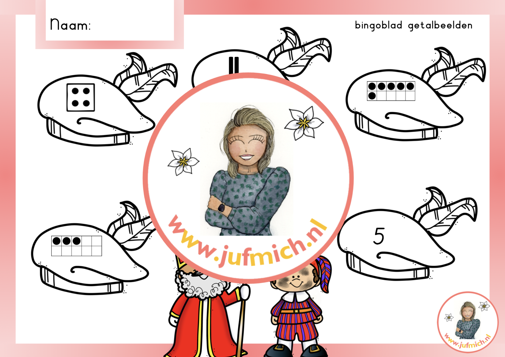 Spel: Zaklamp bingo getalbeelden tot 6. Deze download bevat verschillende bingobladen en getalkaartjes in het thema sint&piet.