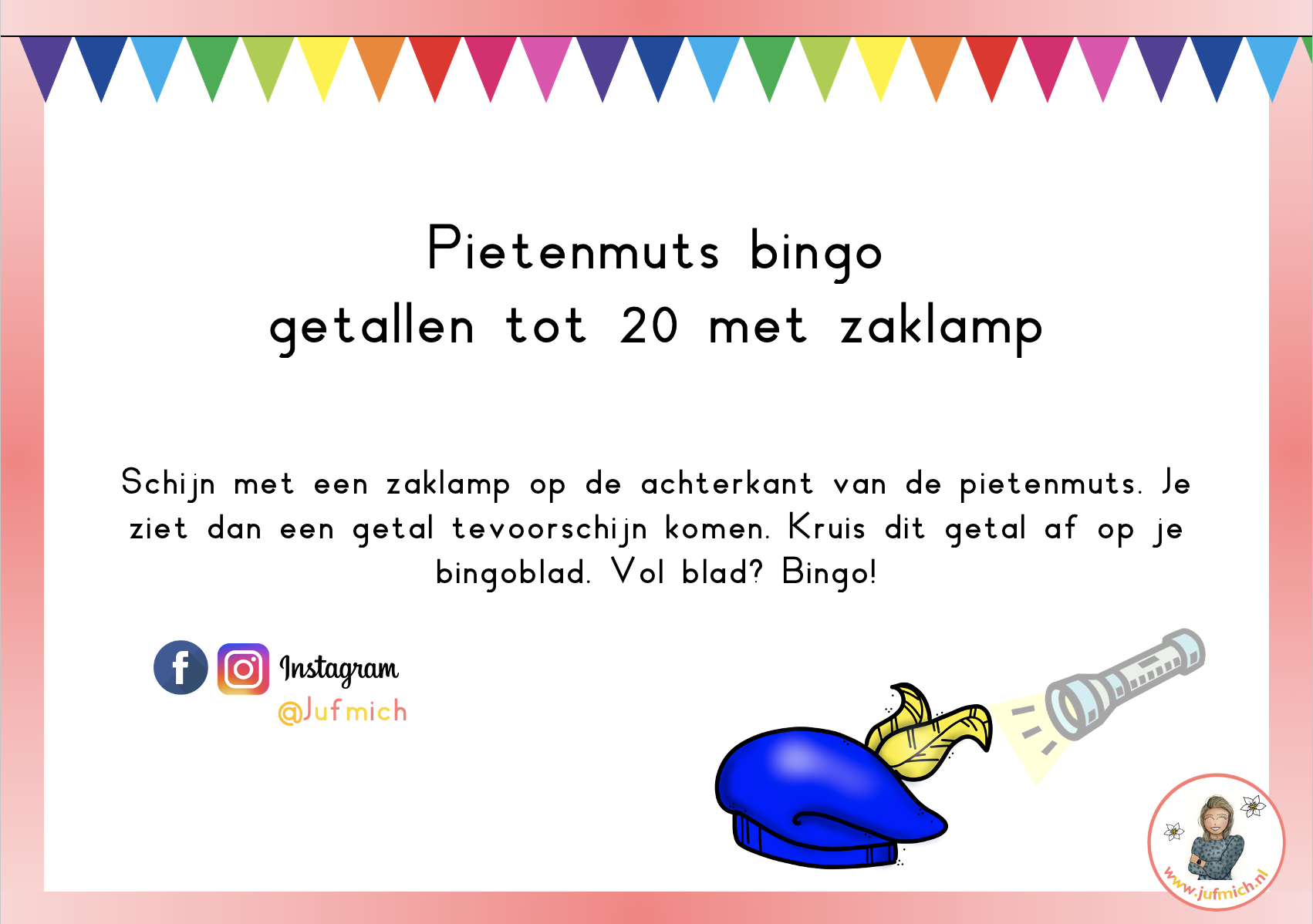 Spel: Zaklamp bingo getallen tot 20. Deze download bevat verschillende bingo bladen en getalkaartjes in het thema sint&piet.