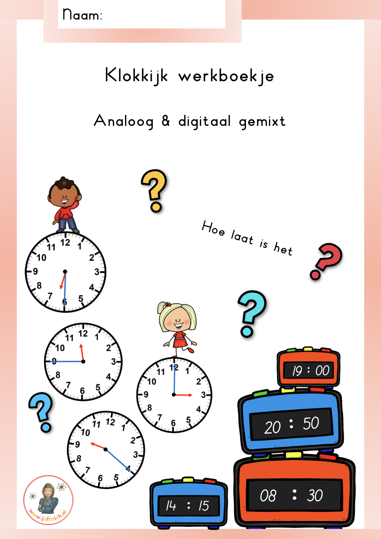 Deze download bevat 25 pagina's. Hoe laat is het? Kijk naar de klok, schrijf uit hoe laat het is en schrijf de twee digitale tijden op.
